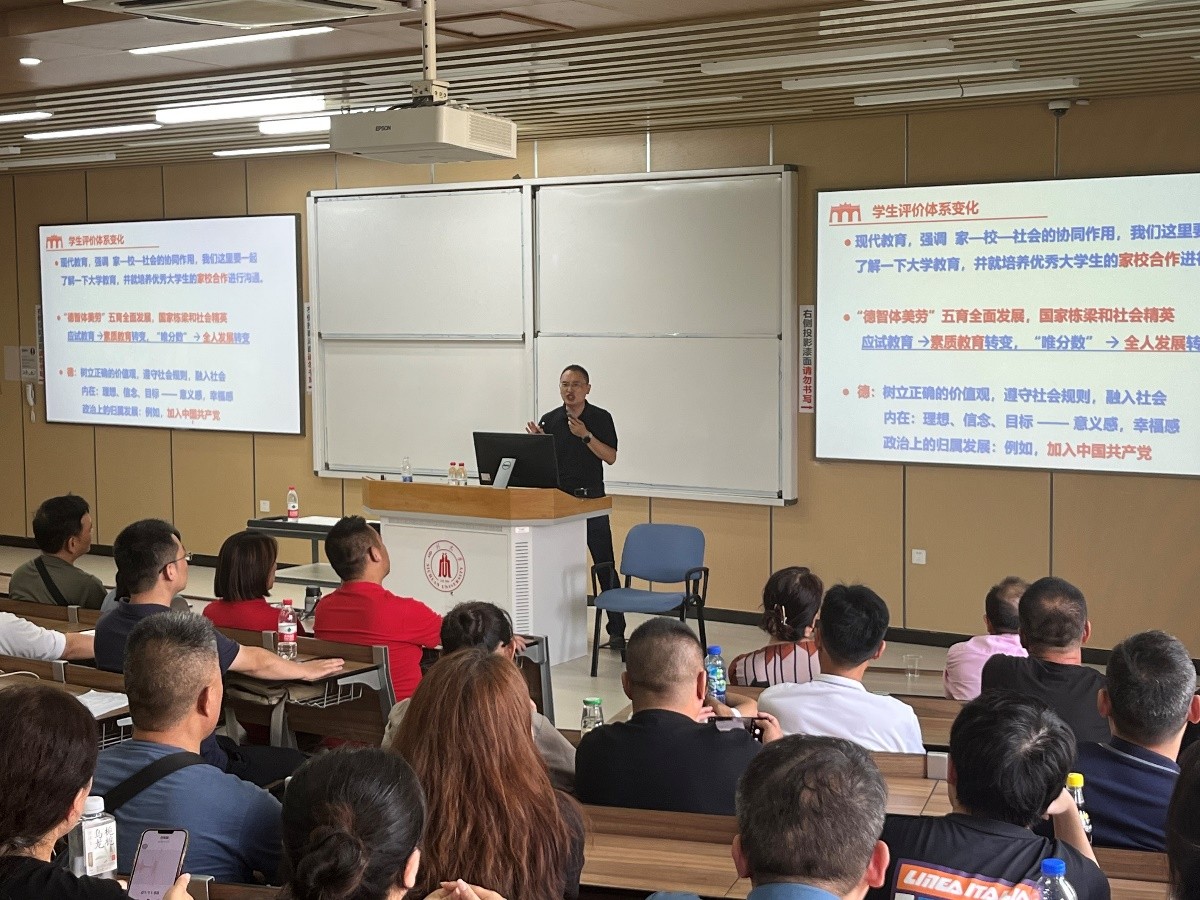 张波首先向家长们简要介绍了学校及学院的总体情况、办学历史、国际交流、团队力量等情况,同家长们交流了大学学习生活和高中的不同,并针对性地提出了相关建议,最后,就家长们最关心的几个问题进行了互动交流。