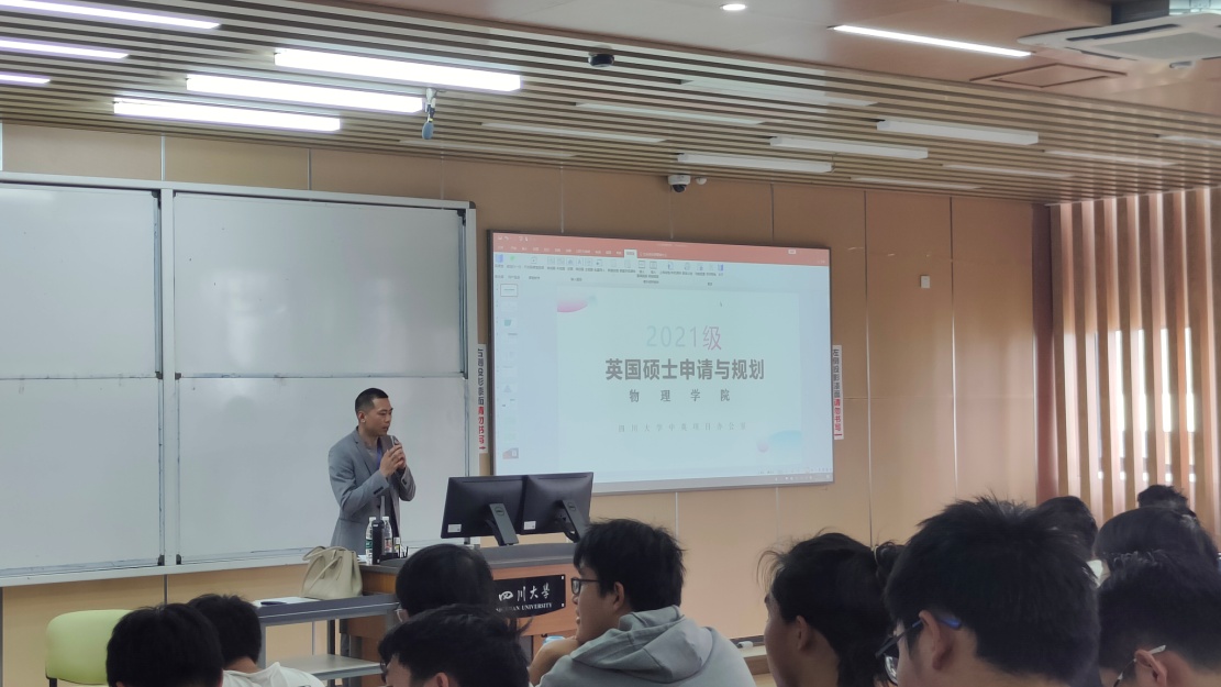 王老师首先为同学们介绍了公司员工历年出国留学深造的相关数据统计情况,分析了出国留学在学术能力以及就业前景、环境等方面的优势。王老师针对学院员工的专业特点,详细介绍了英国知名大学的招生情况和录取要求。最后,王老师鼓励同学们为出国升学提前做好准备与规划,积极参加大川视界、国际交流周等项目,对出国留学提出了时间安排上的建议,并和大家分享了如何准备托福、雅思考试。
