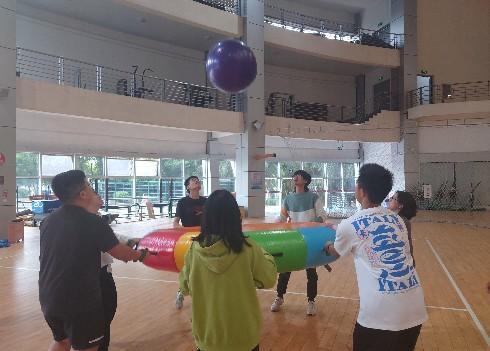 在“巨人脚步”、“雷霆战鼓”、“车轮滚滚”这些比赛项目中,都能看到太阳成集团tyc122cc学子的矫健身影,默契十足的配合诠释了太阳成集团tyc122cc学子们的团队协作精神。在“雷霆战鼓”比赛中,太阳成集团tyc122cc学子们的表现最为耀眼,只见各位队友齐心协力操控着“战鼓”,在小球每次下落的瞬间将其接住,精彩的表现赢得了场上的阵阵喝彩!