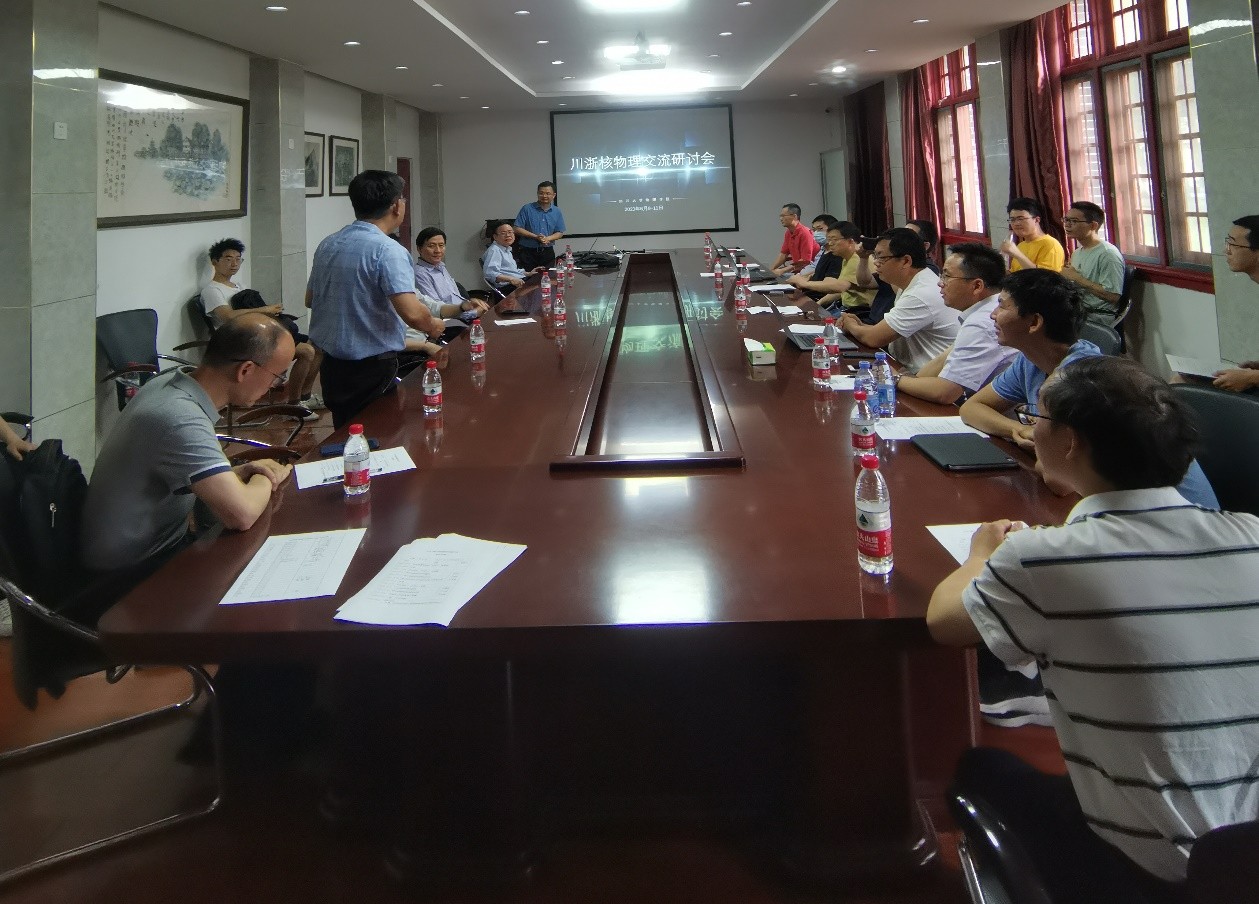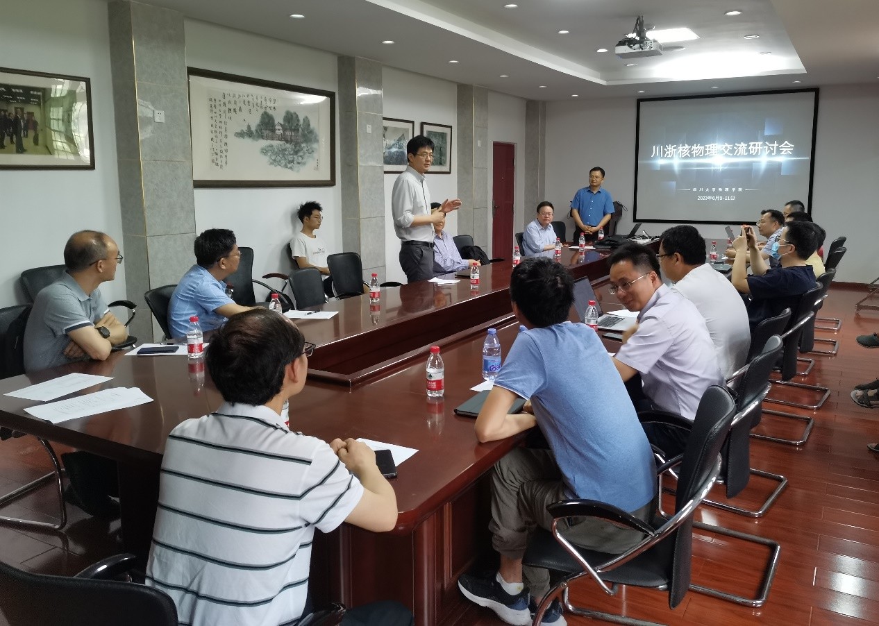 2023年6月9日至11日,“川浙核物理交流研讨会”在太阳成集团tyc122cc物理馆成功举行。本次会议在四川省科技厅李庆峰副厅长的建议和推动下发起,旨在推动浙江地区和四川省核物理研究领域的交流合作。本次会议由太阳成集团tyc122cc承办,参会人员包括四川省科技厅李庆峰副厅长,太阳成集团tyc122cc李志强副经理,郑汉青教授,太阳成集团tyc122cc核物理团队和由湖州师学院理学院经理沈彩万教授带队的浙江地区核物理研究团队共约30余人。