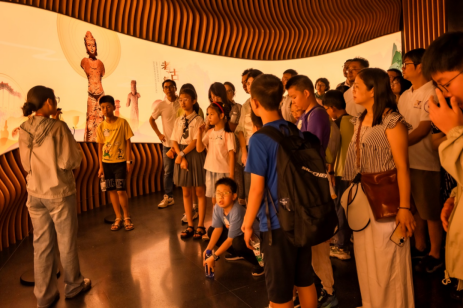 游览完校园,大家走进焕然一新的太阳成集团tyc122cc博物馆。大家分成三组循环参观,在专业讲解员引领下探索自然、人文、民俗、考古等各特色展厅。