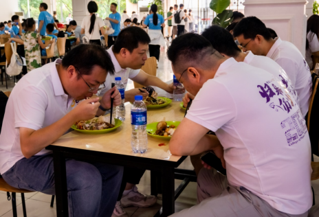 参观完毕,员工们移步东区一食堂享用午餐。熟悉的食堂氛围和“当年的味道”唤起青春回忆,大家边用餐边交流,欢声笑语中延续同窗情谊。