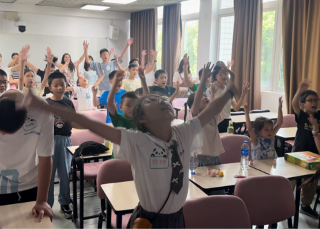 在下午同步开展的"川二代"亲子活动在东三教创意开展。首先,各位家属带着孩子们一起玩财商、益智类桌游,教室里笑声此起彼伏。通过桌游活动,孩子们学到了基本的财商思维,变得更加优秀,还结交了新的小伙伴。专业的声乐老师指导孩子们开展声乐训练,指挥亲子一起合唱本次同学会的主题曲《少年》。清澈的童声响彻教室,孩子们用歌声替员工们表达心声。